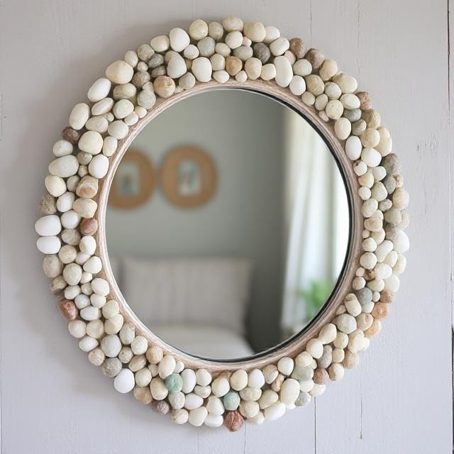 1. Marcos de espejo o cuadros decorativos: Pega piedras pequeñas en los bordes de marcos para personalizarlos. Perfecto para un estilo rústico o decoración vintage para dormitorios.