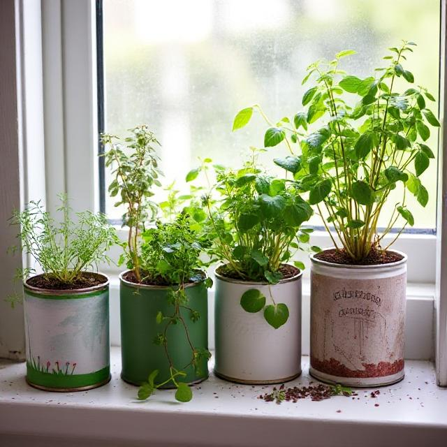 • En la cocina, crea una mini huerta con hierbas aromáticas en latas recicladas.